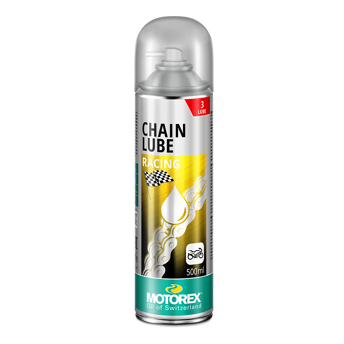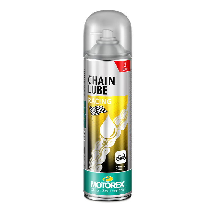 MOTOREX Spray lant RACING [TEFLON] este un produs pentru întreținerea lanțului de transmisie, conceput să reducă frecarea, să limiteze uzura și să protejeze împotriva apei, murdăriei și depunerilor. Aplicarea regulată ajută la funcționare mai lină și la prelungirea duratei de viață a transmisiei. Pentru cele mai bune rezultate, aplică produsul pe un lanț curat.