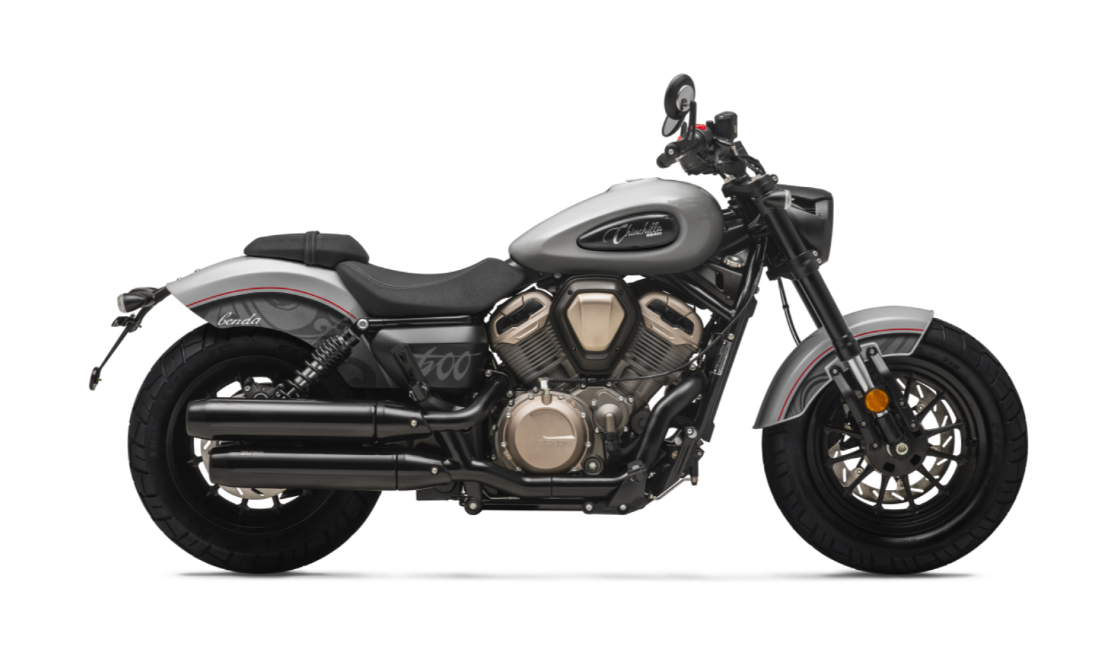 Chinchilla 500 este un V-Cruiser care combina estetica retro cu componente moderne. Rezervorul lacrima, aripioarele scurte, eusapamentul dublu stivuit pe dreapta si rotile late de 16 inch ii dau o prezenta solida pe drum. Inaltimea seii de 705mm si ghidonul larg asigura o pozitie comoda pentru cei mai multi rideri.