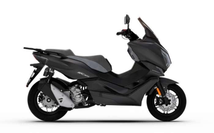 Scuter 300cc cu motor de 278cc si 24 CP, display TFT 5 inch, suspensie KYB, frane J.Juan cu ABS, TCS, TPMS, manere incalzite si keyless. Viteza maxima 120 km/h.
