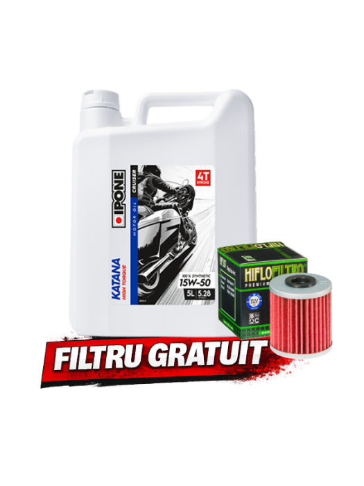 Ulei motor 4T IPONE KATANA HIGH TORQUE 15W50, 5L, pentru motociclete, scutere și ATV-uri, cu lubrifiere eficientă, protecție la uzură și funcționare stabilă.